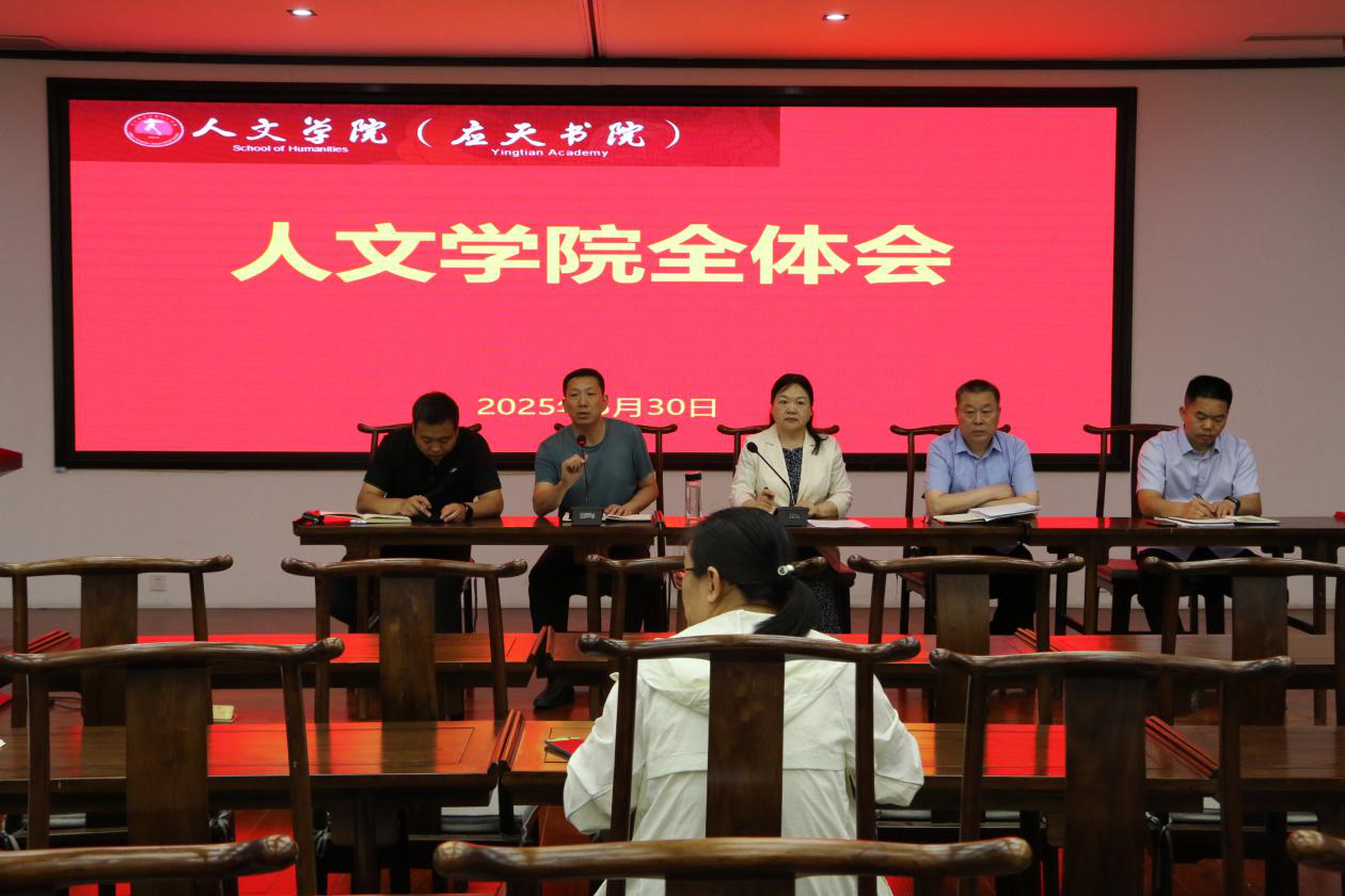 5月30日下午,买球官方网站在汉梁楼国学堂召开全体教师会议,学院党委书记陈晓明主持会议,党委副书记卢忠雷、副院长冯志伟、李卫军、刘万华及全体教职工参会。