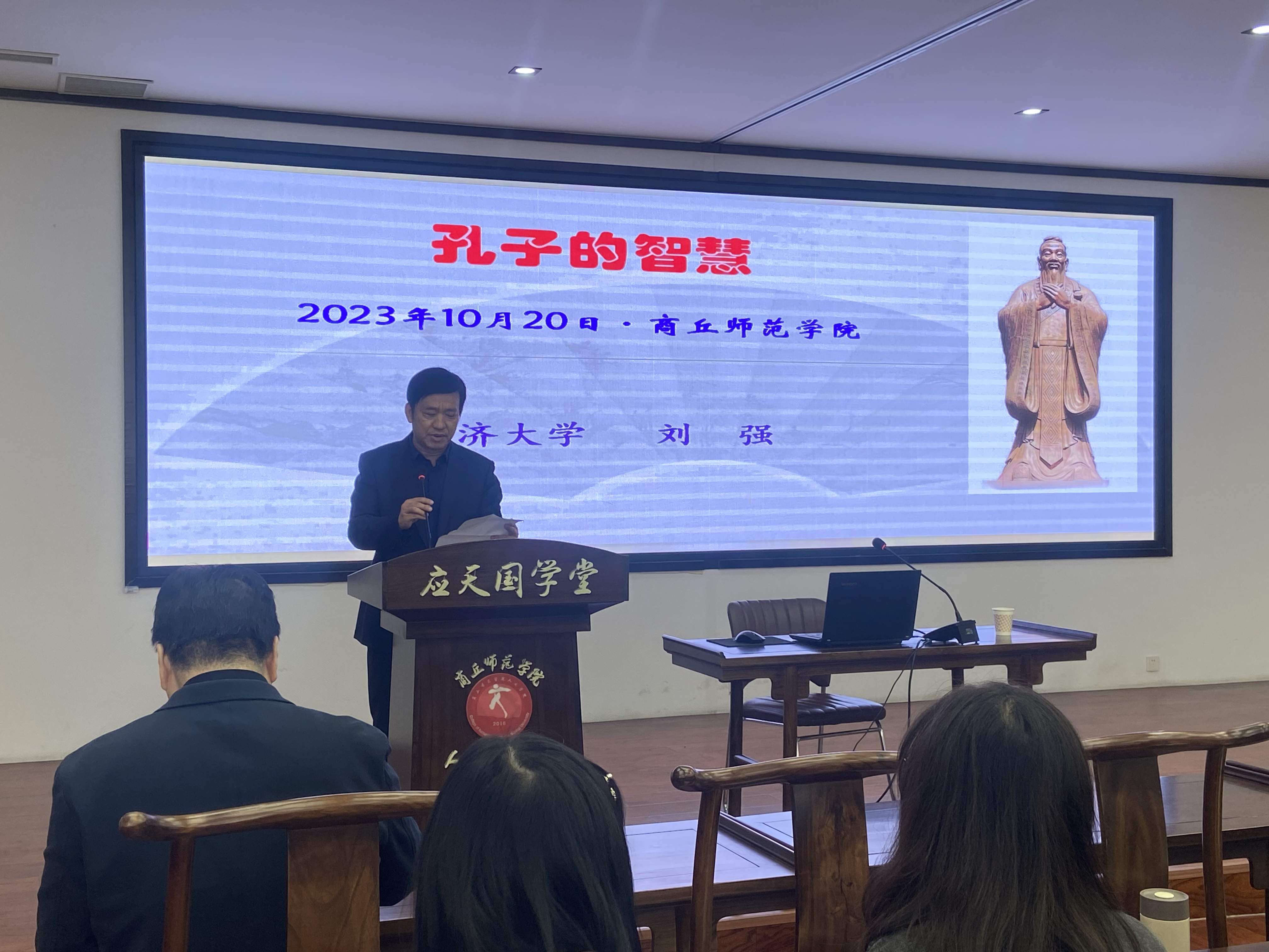 随后,刘强教授通过解读孔子的毕生所得及传世贡献,明确指出作为儒家学派创始人的孔子之所以能以“圣人”名垂千古,源于作为一名教育家,他如一盏长明灯,照亮了中国历史,滋养了中华文化,更造福于千秋万代,新时代的今天更要重新发现孔子的智慧和价值。
