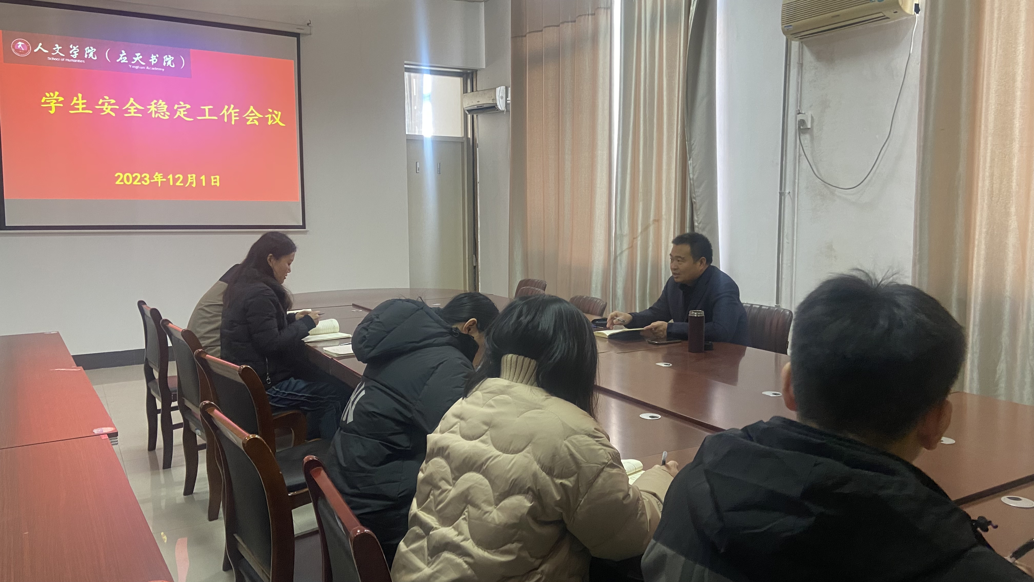 会议强调,要坚决杜绝麻痹思想、侥幸心理,要以高度的责任感使命感及时关注学生思想动态,切实做好学生心理健康教育;要深入班级和宿舍,加强⻛险隐患排查;要关心关爱学生,及时发现问题、及时化解矛盾,确保校园安全稳定!