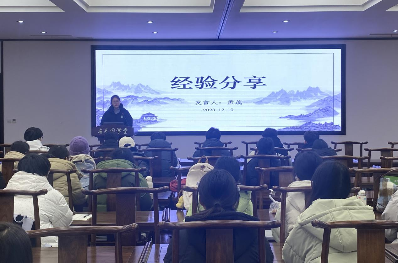为提高师范生专业素养,激励师范生学习热情,买球官方网站邀请优秀汉语言专业2024届预毕业生、河南省第二十一届高等学校师范类专业毕业生教学技能大赛一等奖获得者孟蕊走入课堂,分享经验,交流学习。本次学习经验交流会于2023年12月19日在汉梁楼应天国学堂举行,副院长刘万华主持会议,汉语言2023级全体同学参加了活动。