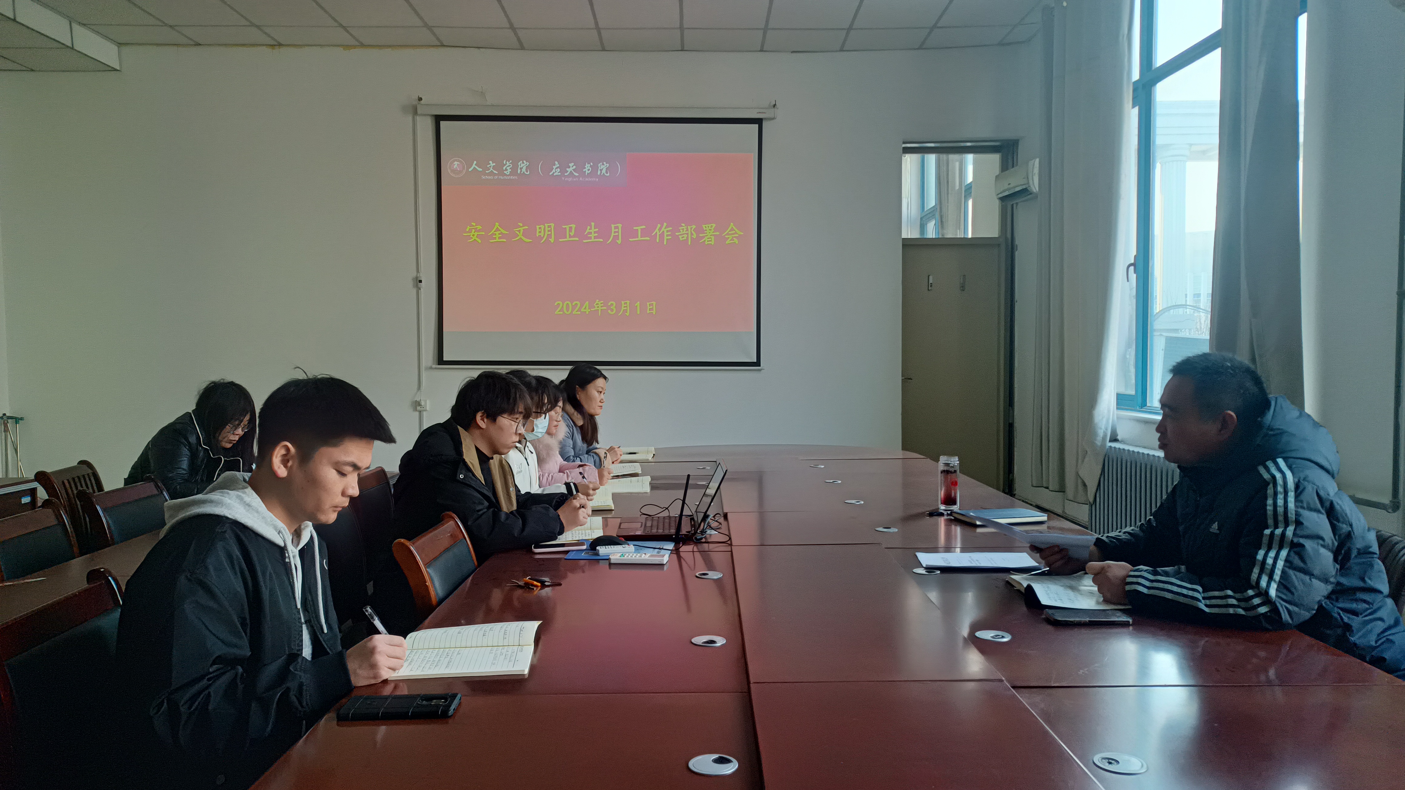 卢忠雷传达了学校《2024年“安全文明卫生月”活动实施方案》的通知和《买球官方网站2024年“安全文明卫生月“实施方案》,并对活动开展进行了具体安排部署。