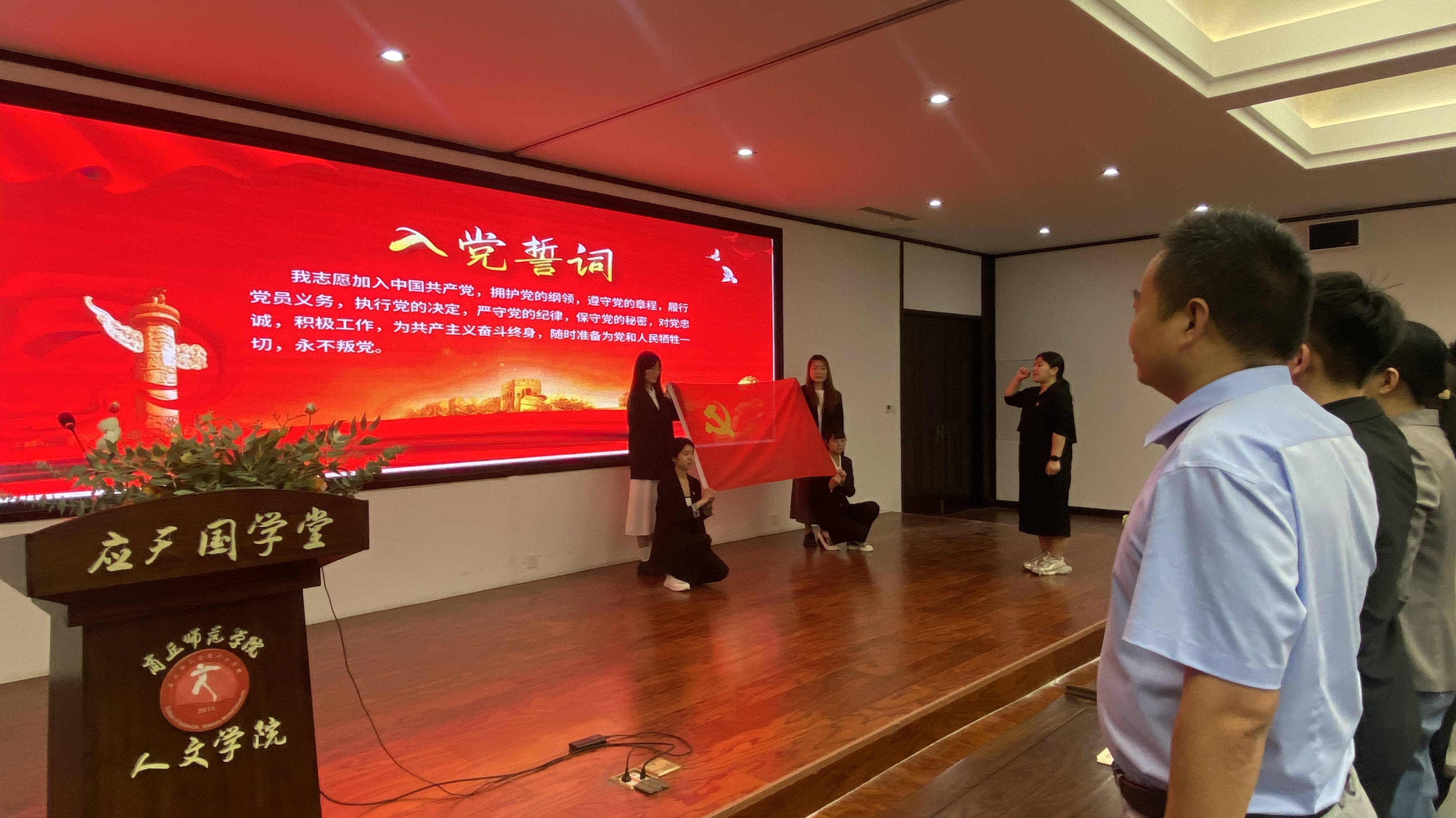 会上,2024届毕业生党员李函澍同学代表毕业生党员发言,她表示要以实际行动践行党员的初心使命,用卓越的成绩为母校增光添彩,并对学校的培养和教育表达了感谢;汉语言文学专业22-1班任梦瑶同学代表在校生新党员送上祝福。随后,全体与会老党员举行了重温入党誓词仪式。