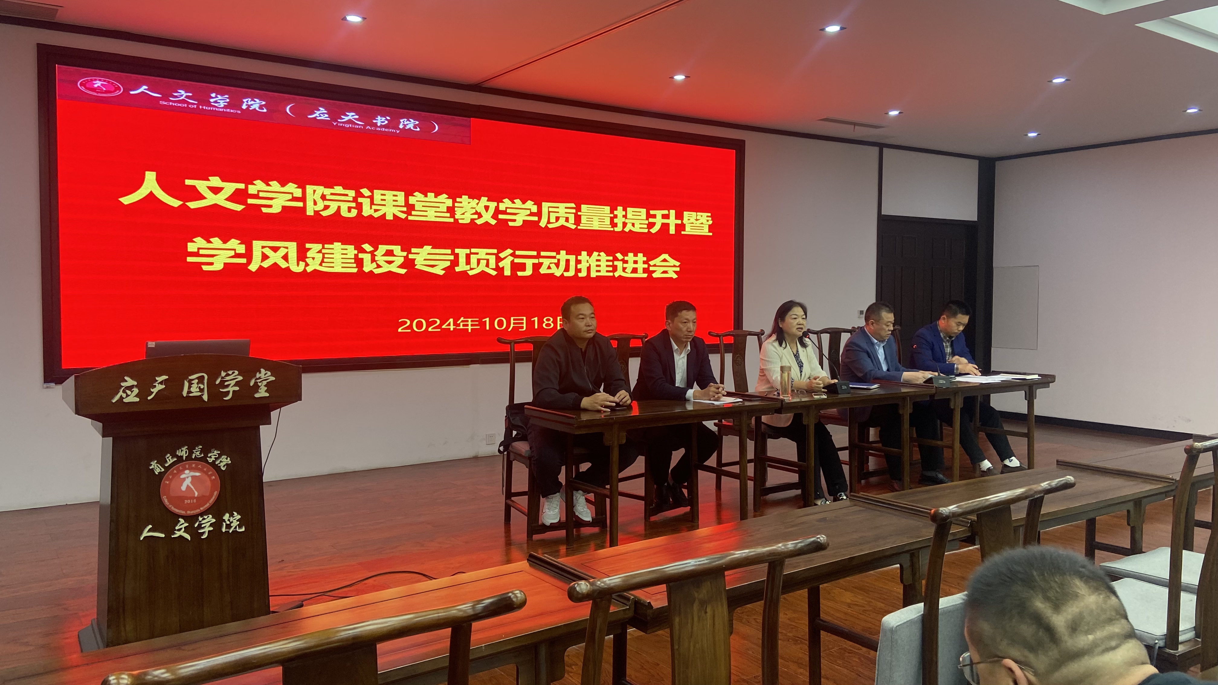 为进一步提升课堂教学质量,加强学风建设,10月18日,买球官方网站在汉梁楼国学堂召开了课堂教学质量提升暨学风建设专项行动推进会。学院党委书记陈晓明、党委副书记卢忠雷、副院长冯志伟、李卫军和刘万华出席会议,全体教师参会。会议由陈晓明主持。此次会议旨在凝聚共识,明确目标,推动学院教育教学质量和学生学习风貌的全面提升。