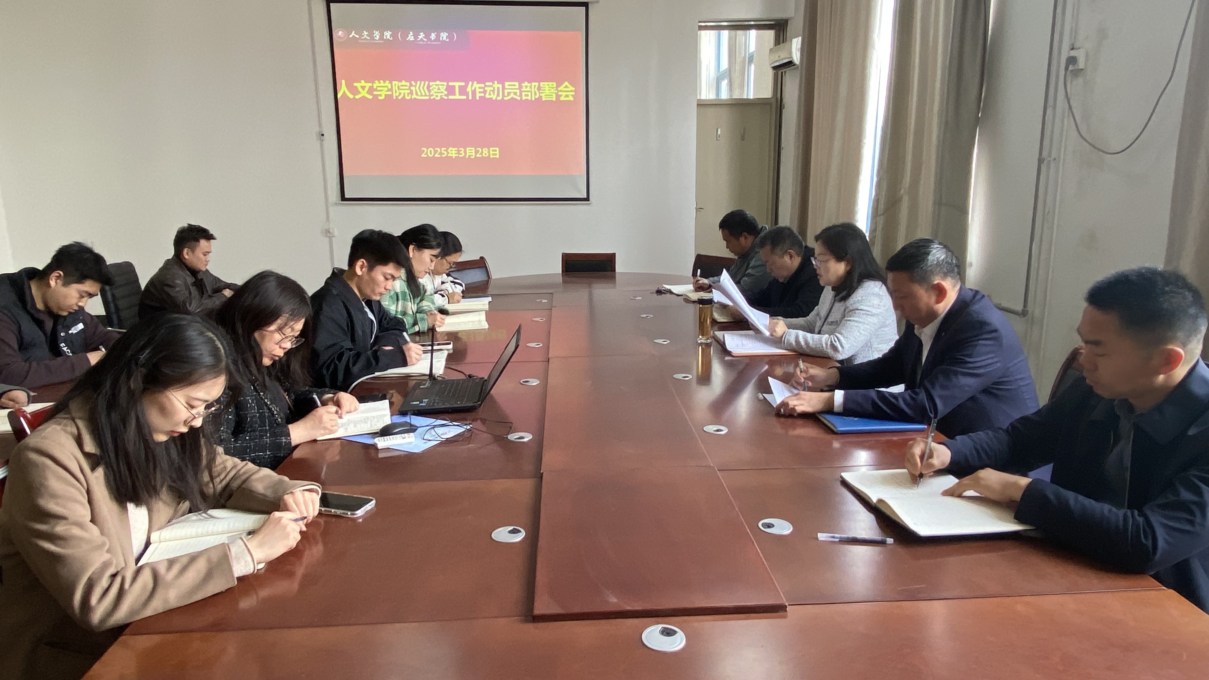 3月28日下午,买球官方网站在汉梁楼208会议室召开巡察工作动员部署会,全面部署迎接学校巡察的各项准备工作。学院党委书记陈晓明、党委副书记卢忠雷、副院长冯志伟、李卫军、刘万华及科级干部参加会议。会议由党委书记陈晓明主持。
